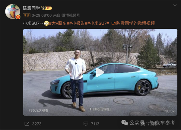 争议的核心,还是陈震发布的评测小米SU7的视频。