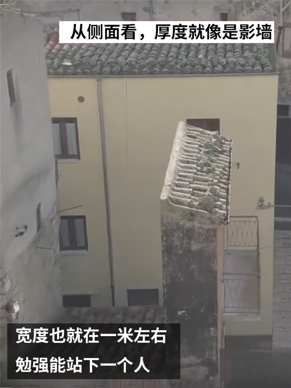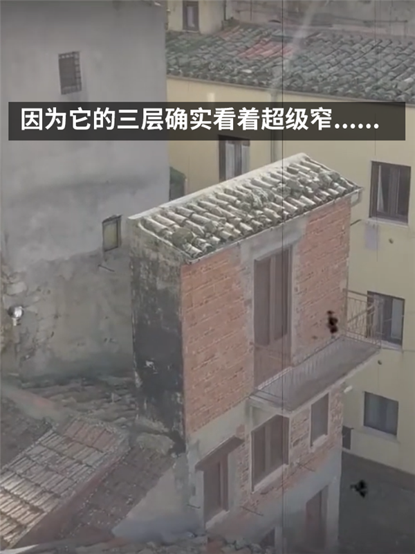 它的一二层是正常的,只有三层看起来非常窄,简直就和一堵墙差不多了。感觉也就1米的宽度,里面站一个人都不好转身,更别说住在里面了。