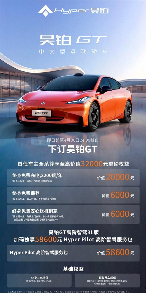 下订昊铂GT车型,即日起至4月30日24:00截止,首任车主全系享至高32000元权益。