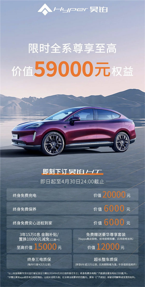 其中,下订昊铂HT车型,即日起至4月30日24:00截止。