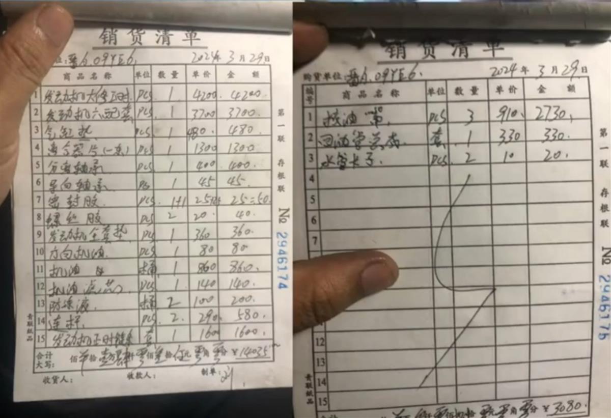 司机在视频中表示,他的货车出现高温、反水故障,当时和修理工人谈好了1000元左右的修理费。但后来修理工索要1.7万元费用,他让对方拿出配件,对方也没出示。双方产生矛盾后,修理工卸掉了货车的轮胎,还拆掉了车上的电路板等。该司机晒出的报价单上标注的费用总计1.7万多元,包含了发动机大修工时4200元、发动机六配套3700元、气缸垫480元、离合器片1300元……