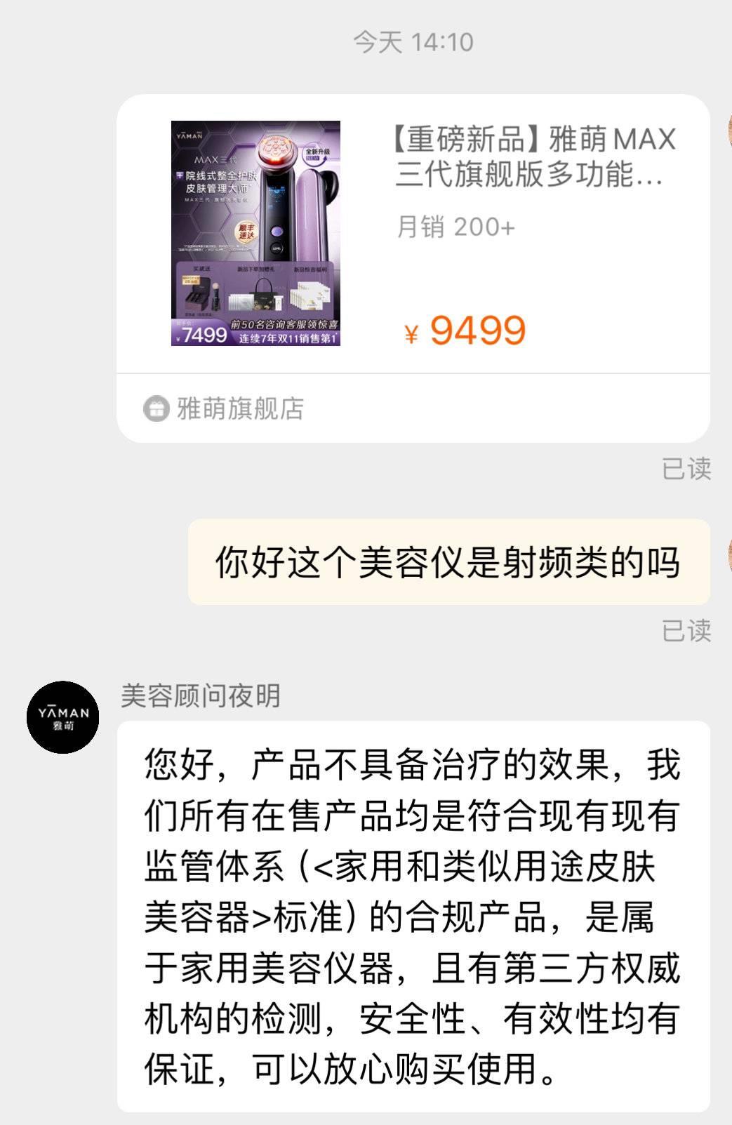 记者还发现,与此同时,初普、雅萌等品牌还上架了新产品,但并未标注是射频仪器。在咨询新品功能后,雅萌客服告诉记者:“产品不具备治疗的效果,我们所有在售产品均是符合现有监管体系(家用和类似用途皮肤美容器标准)的合规产品,且有第三方权威机构的检测,安全性、有效性均有保证,可以放心购买使用。”初普客服也回复记者称,新产品不属于射频类仪器,此前射频类产品不会再上架了。