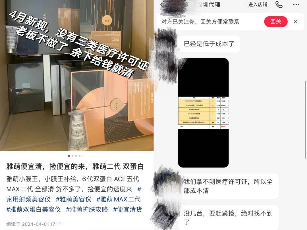 4月1日,有美容仪代理商还在清货。社交平台截图