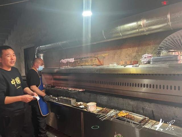 齐鲁牛之然烧烤店老板毕士成说,他进入烧烤行业才三四年,也是入局比较晚的人,但能留住回头客、不断吸引外地游客到金岭镇吃烧烤,让店铺在一众一二十年的老店中突出重围,靠的其实并不只是他借助自媒体的不断“花式”营销,而是烤串的品质。他的店里,无论是烧烤还是蒸包用的都是金岭镇最新鲜、上好的牛羊肉。“当地人常年吃牛羊肉,就是吃个新鲜。你没有精品的东西怎么去跟别人竞争?没有品质也留不住客人。”