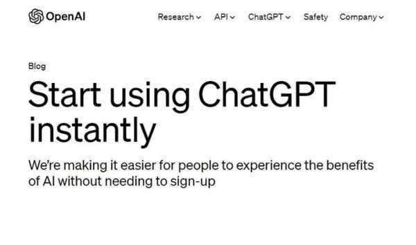 【CNMO科技消息】美国当地时间周一,人工智能公司OpenAI宣布,将允许用户直接使用ChatGPT,而无需注册该项服务,这将让人们更加容易体验人工智能的潜力。