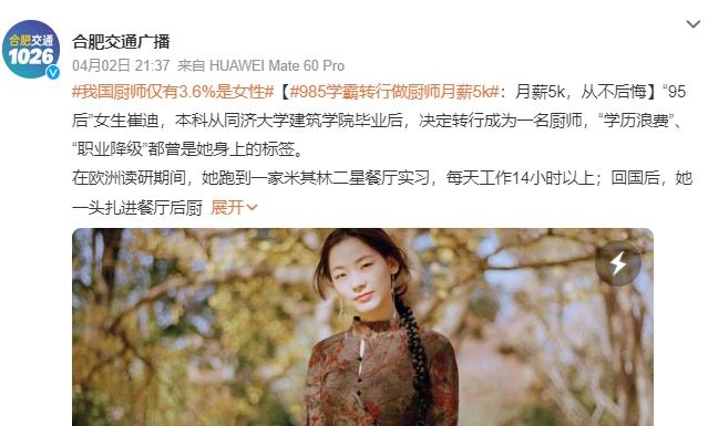 “95后”女生崔迪,本科从同济大学建筑学院毕业后,决定转行成为一名厨师,“学历浪费”、“职业降级”都曾是她身上的标签。在欧洲读研期间,她跑到一家米其林二星餐厅实习,每天工作14小时以上;回国后,她一头扎进餐厅后厨,没日没夜地练习颠勺、翻锅、刀工……先学法餐,再学中餐,留学花了30万,回国后起薪却仅有5500元。一路摸爬滚打后,现在的她是上海两家热门餐厅的主厨。