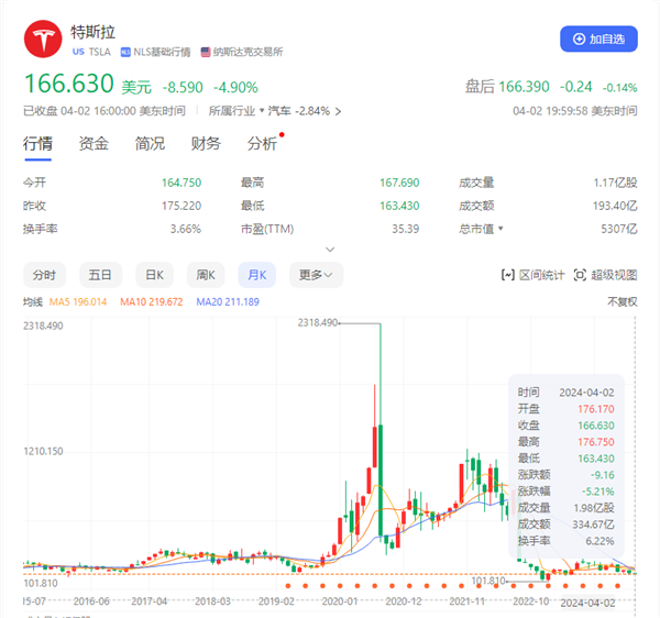 这也是自2020年生产暂停后,特斯拉季度交付量首次出现同比下降,受此影响,特斯拉股价当日大跌4.9%。