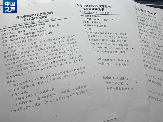 △城阳区自然资源局开出的行政处罚文书(总台中国之声记者管昕摄)