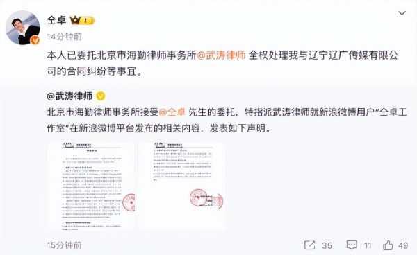 2024年4月8日,仝卓和工作室的矛盾越来越激烈,两者纷争成为了圈内的热门话题,双方你来我往,各执一词,让围观群众看得津津有味。仝卓发律师函后,工作室还硬气的让他直接起诉。