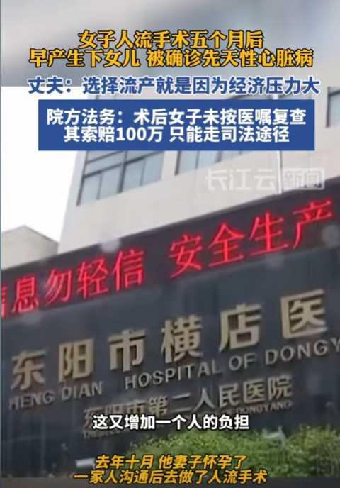 在东阳市横店医院,申师傅的妻子因为经济压力大选择了做人流手术。原本以为这就是一场普通的手术,可谁能想到,五个月后,他们的女儿早产降生了!孩子被确诊为先天性心脏病。