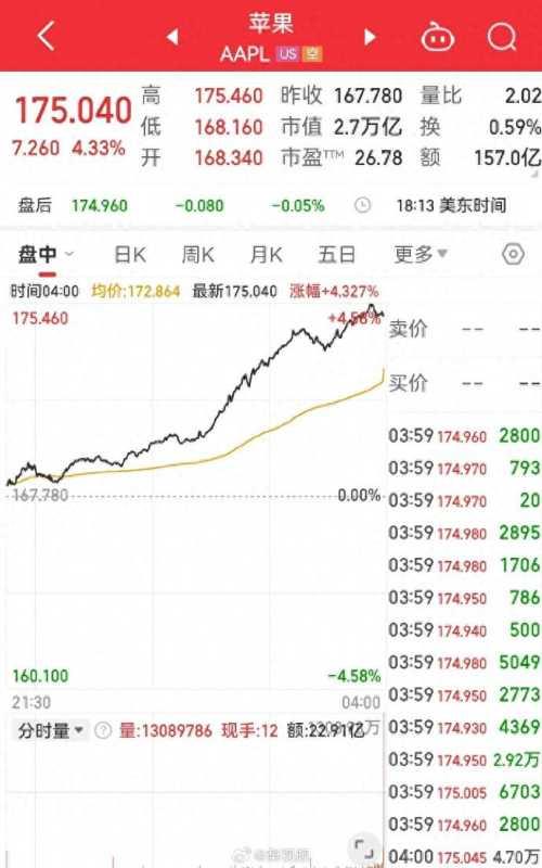 苹果市值一夜暴涨8113亿
