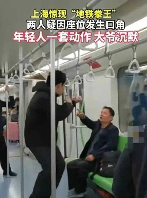 近日,在上海地铁两位乘客因为座位问题发生口角,然而最令人惊讶的是,其中年轻男子秒变“地铁拳王”,正在剑拔弩张的两个人,随着小伙子的一套蹦跳组合拳下来,大爷沉默了。