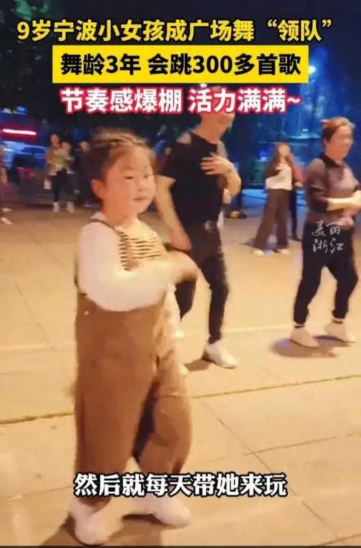 据说,宁波9岁小女孩是从上幼儿园的时候,每天晚上跟着家人,学跳广场舞。