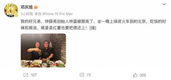 新浪财经CEO邓庆旭4月21日发布微博称,钟薛高创始人林盛在被限高后,坐了一晚上绿皮火车来到北京,他表示,就是卖红薯也要把债还上。根据中国执行信息公开网信息,今年3月,林盛被限制高消费。