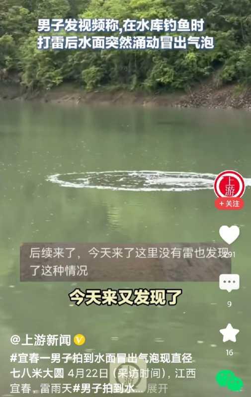 大惊小怪,河流湖泊常见,河底树叶沼气,雨天是偷排污的高峰期,这连老百姓都知道,不信下大雨时闻闻空气那个味。