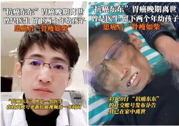 4月26号,80后医生东东离世,而这是他抗癌四年之后的容颜对比照。