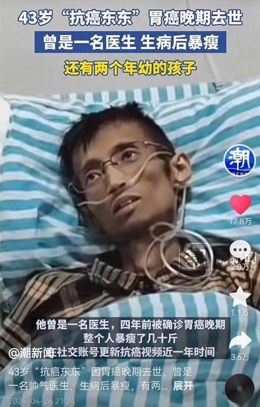 抗癌网红圈再传噩耗,抗癌网红东东去世了,年仅43岁。