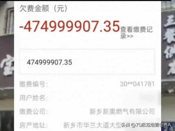 5月13日,河南新乡一做饮食行业的商家发现自己店里欠费4.74999907.35元,您数一数,这是什么位数,这商家如果真的用掉了这么多的燃气费用,那老板也不用关门大吉,盈利不得有几十个亿啊!