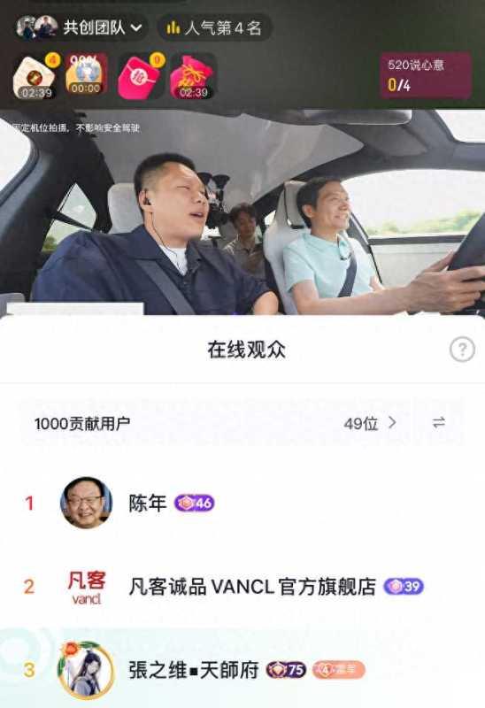 雷军直播间显示,本次直播在线观众中,凡客诚品CEO陈年列贡献用户第一位,第二位则是凡客诚品官方旗舰店。