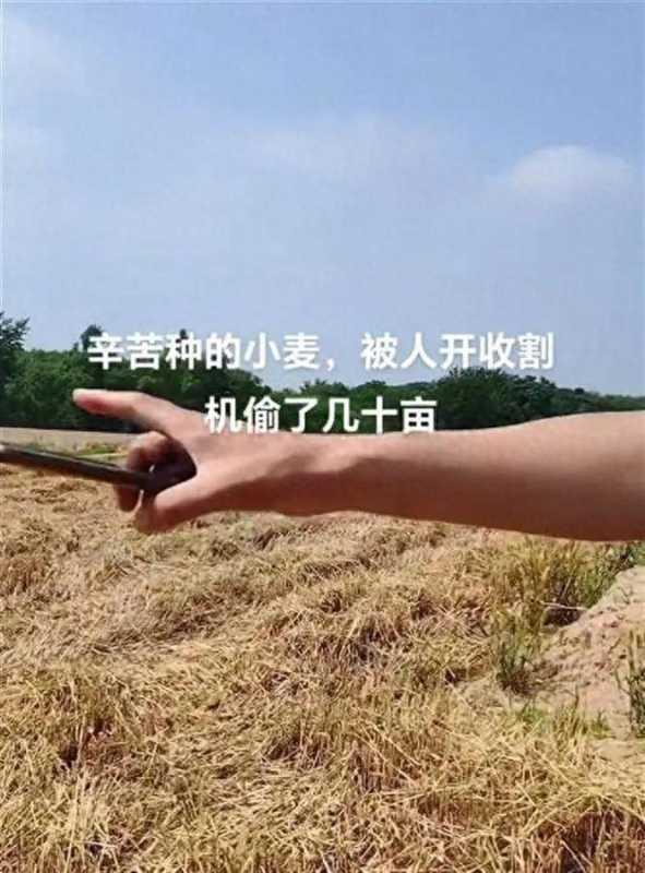 5月24日,一名网友发视频称,辛苦种的小麦被人开着收割机给偷了。从视频里可以看到,成片的小麦已被人收割,留下了满地的秸秆。