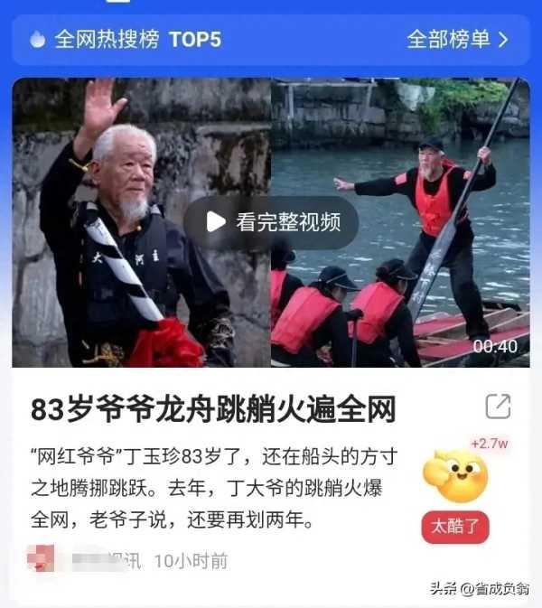 83岁白胡子爷爷龙舟跳艄火遍全网,具体情况如何?