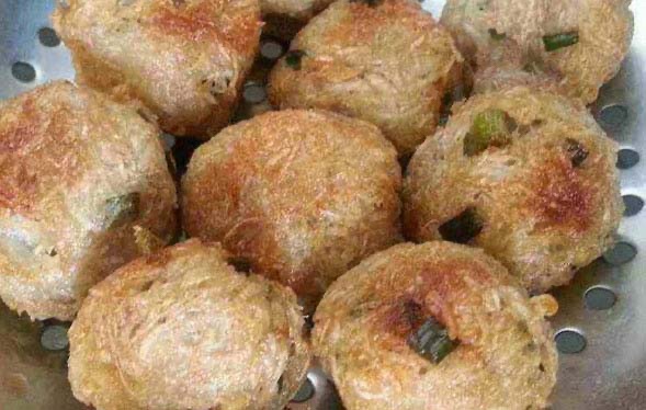 客家人逢年过节都少不了芋圆,这里的做法是将芋头去皮切丝,然后和着粘米粉和盐一起搌成干馅备用,然后将干馅捏薄之后放去油锅中炸熟捞出,放到坛中密封起来,等到节假日的时候就可以取出享用了。