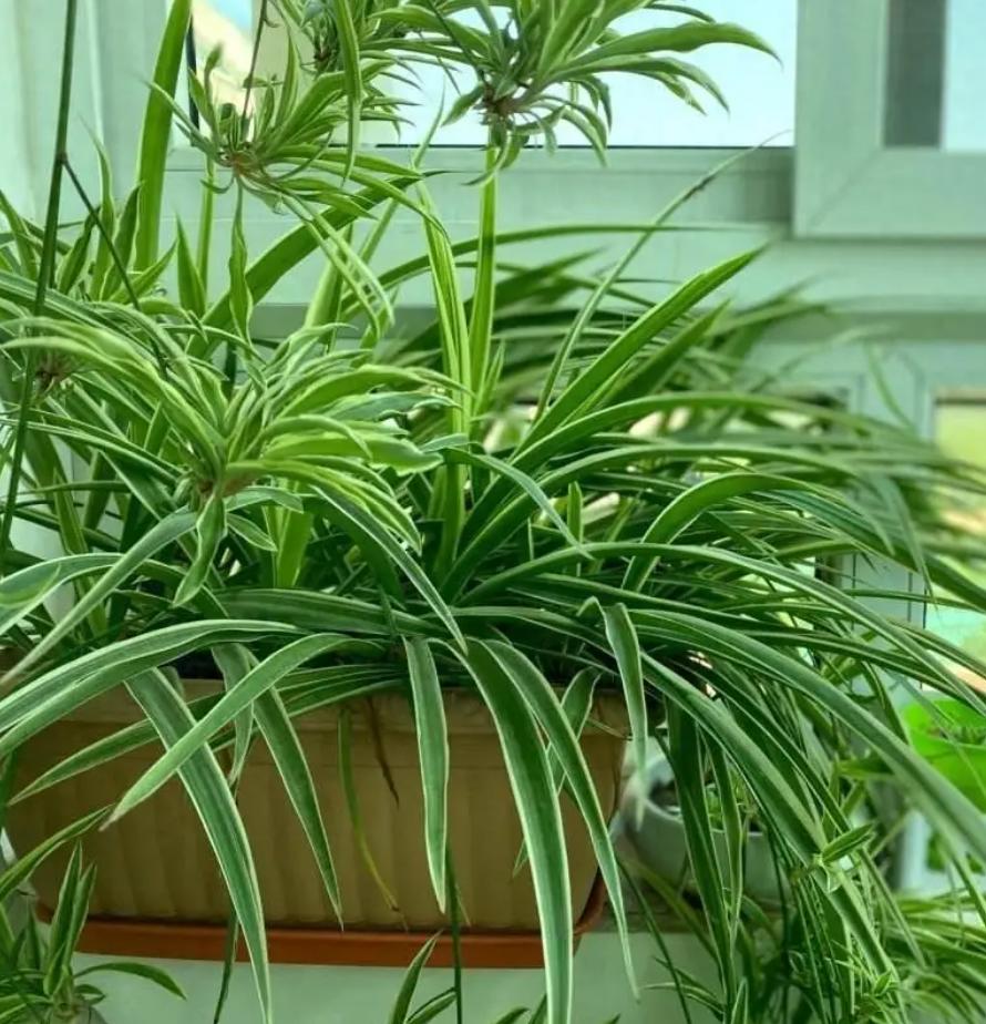 吊兰,以其优雅的姿态和强大的空气净化能力,成为了许多家庭的首选绿植。它的叶子细长柔软,从茎上垂下,宛如绿色的瀑布,给室内空间带来一抹清新。吊兰不仅容易繁殖,还极其耐阴,是名副其实的“懒人植物”。