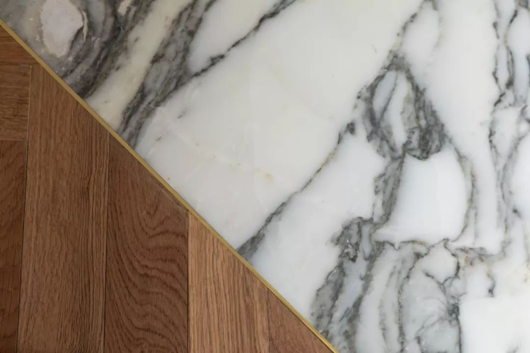 若是觉得T字条收口会有一个凸起的收边条不够简洁,也可以选用金属收边过渡条,这种收边条是完全嵌入地面,装在瓷砖与木地板中间并与两侧都保持相对平整地安装。