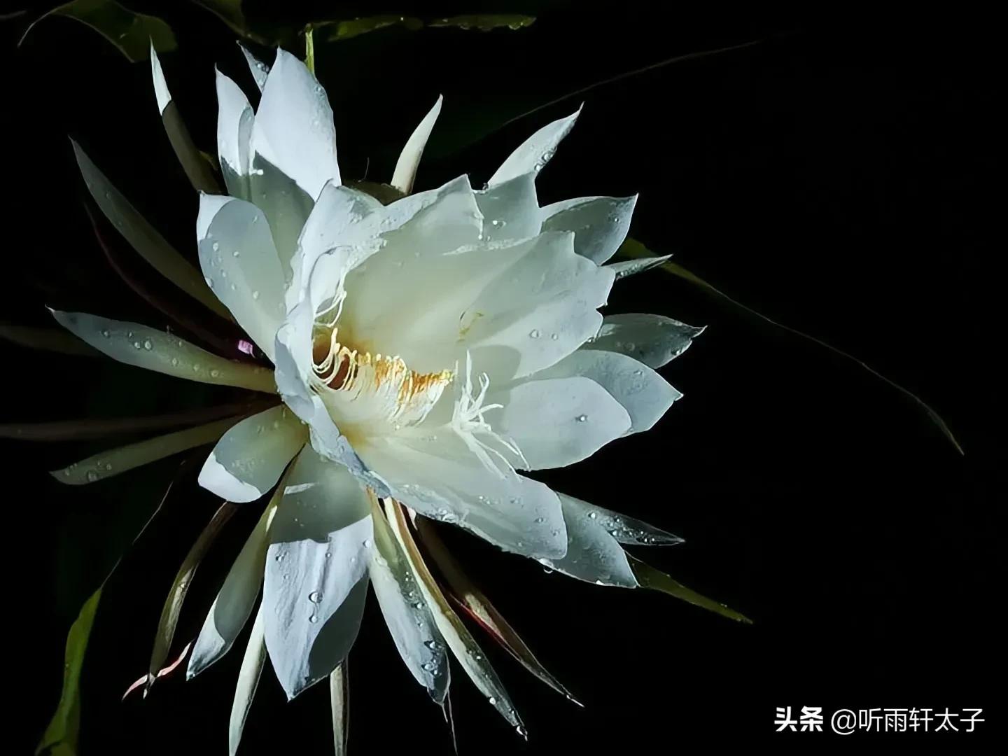 白天气温高,水份很容易蒸发,而且蒸发量又大,使得昙花得不到足够的水分来开放,等到晚上气温降低并且水份蒸发量又少的情况下,昙花才能取得足够的水分进行开花。