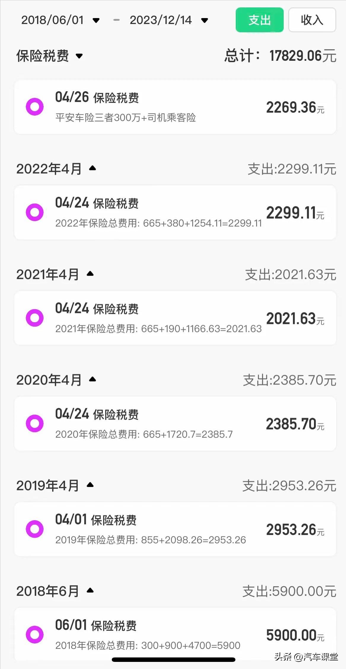 实际使用5年,平均每年3万元,每月就要养车成本高达,2500元。