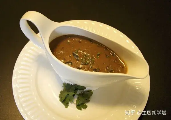 最终的粘稠效果就是用汤匙背部沾一下酱汁,用手指划开而保持界限分明的状态。