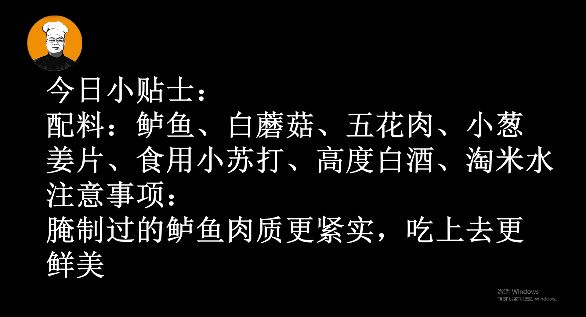 鲈鱼、白蘑菇、五花肉、小葱、姜片、食用小苏打、高度白酒、淘米水