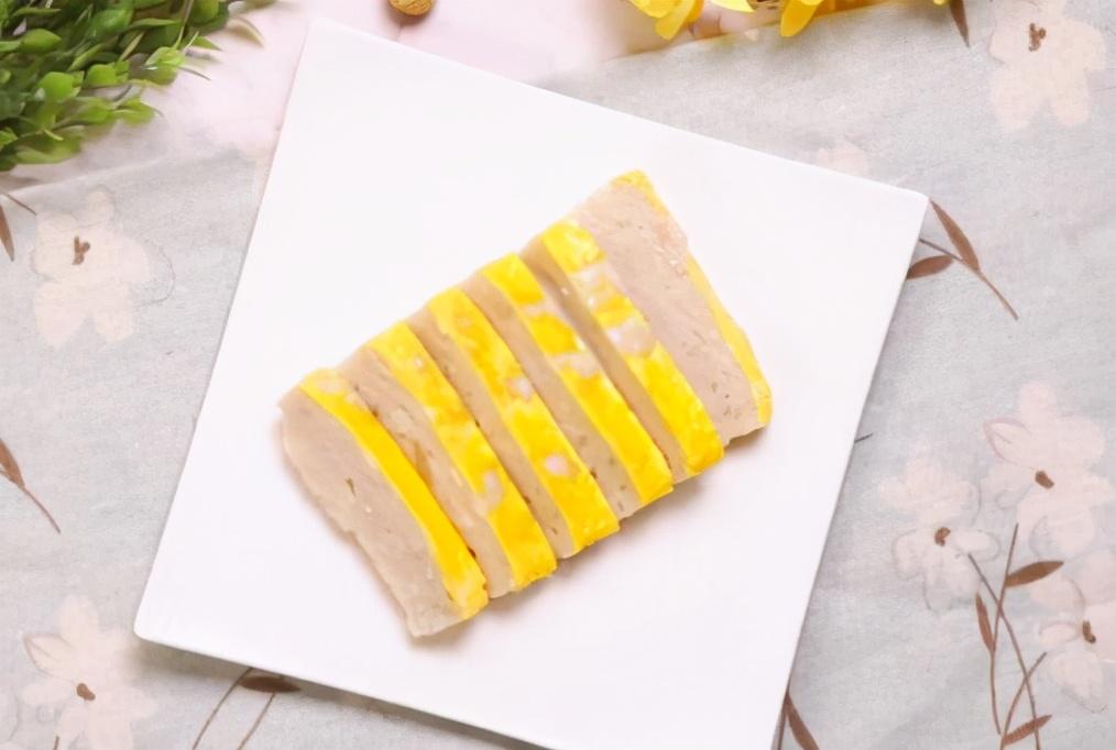 第4步,准备一个碗,把打好的肉泥倒入碗内,加入10克的胡椒粉,10克的鸡粉;再加入10克的盐,然后我们再加入200克的淀粉,然后我们把它搅拌均匀,腌制40分钟, 第5步准备一个容器,也可以是方形,也可以是长形,在容器内刷上油,然后我们把腌好的肉泥倒入进去,铺平,然后再倒入鸡蛋黄,摇晃均匀, 第6步;起锅烧水,把我们弄好的肉泥放在锅上去蒸,时间大约35分钟,蒸好之后脱模切片即可食用,