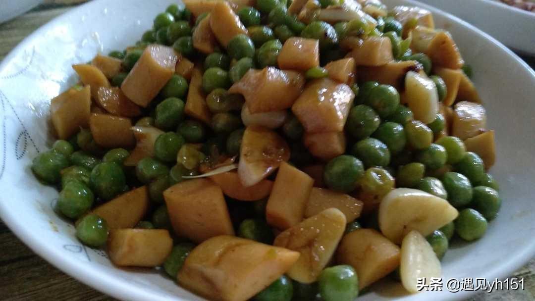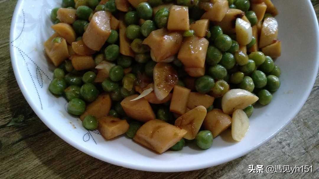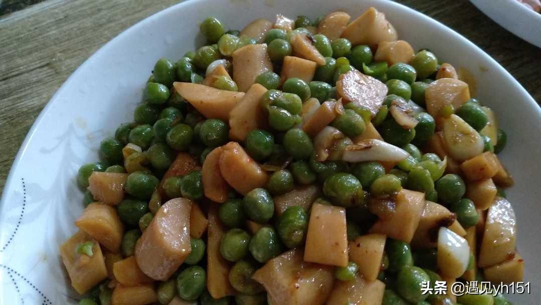 豌豆炒火腿肠的做法?火腿肠炒青豌豆,圆润鲜绿