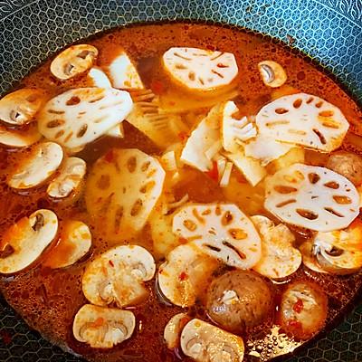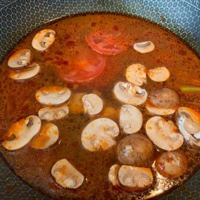 5、加入蕃茄、蘑菇煮开。