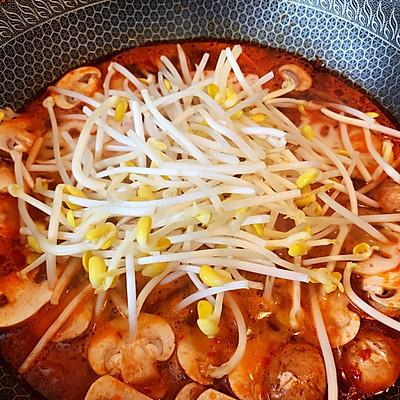 7、加入黄豆芽,煮熟。