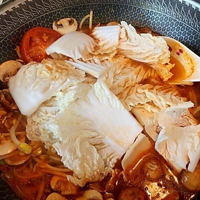 8、加入大白菜,煮开。