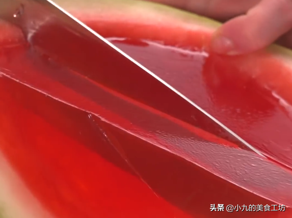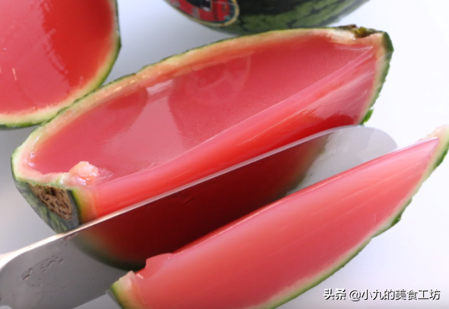 【需要注意的细节】:1、鱼胶粉,也叫吉利丁粉,是从动物骨头中提取出来的一种蛋白质凝胶,不含淀粉,不含脂肪,大家可以放心添加食用;西瓜大小不同,加入的鱼胶粉也不同,一般是每300g果汁(或者清水)放入4g的吉利丁粉最为合适,口感软嫩刚刚好;