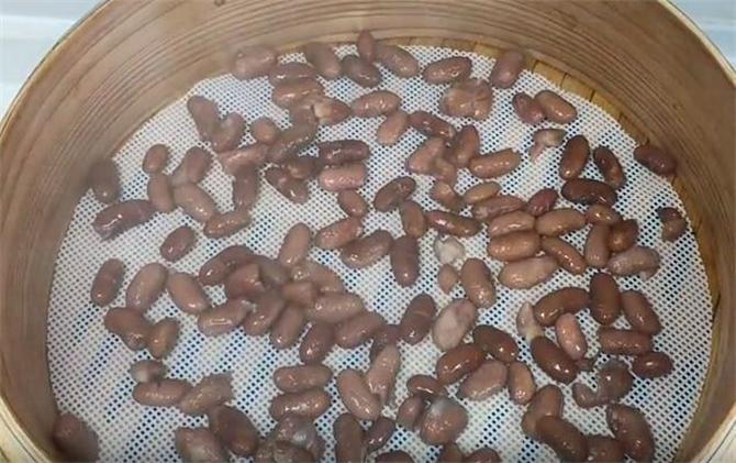 4.接下来准备一大锅水烧开,在蒸笼底部铺上一层豆子,这个蒸笼我们尽量选透气性好的,蒸好的豆子也不要铺太多,给它留出足够的空隙,让热气能够窜上来。