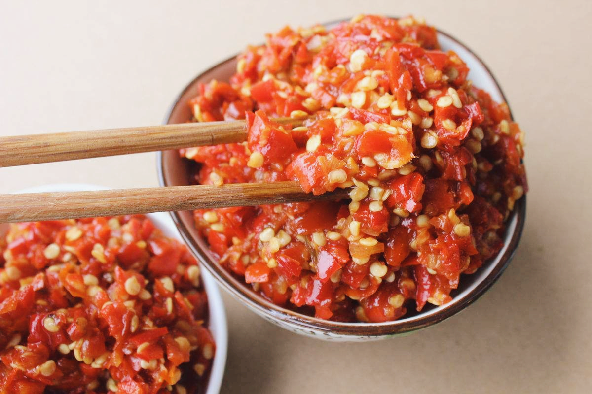 剁椒又叫剁辣子、坛子辣椒,是湖南、贵州一带的常备调味品,把辣椒调味后腌制,开坛即食,现在生活条件提高了,人们对美食的追求也愈发提高,就拿厨房的调味品来说,原来只有油盐酱醋,现在增加了不少口味,豆瓣酱、剁椒酱、番茄酱、沙司、烧烤酱、鱼露、蚝油等,对于爱吃辣的人来说,剁椒酱独一无二,无可代替,可以直接拌米饭、炒菜、拌面、拌凉菜,还可以做剁椒鱼头,口感偏重,味辣而鲜咸,绝对美味的很。