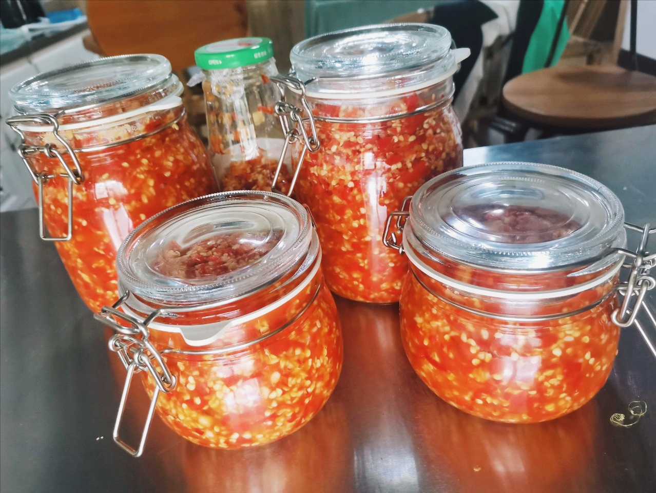 6、装瓶的剁椒酱,可以直接吃,如果等发酵以后,那口味会更好,可以直接拌米饭、拌面条、炒菜,做一顿拿手的剁椒鱼头,热油一浇,隔着老远都能闻见香味。