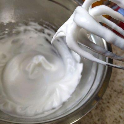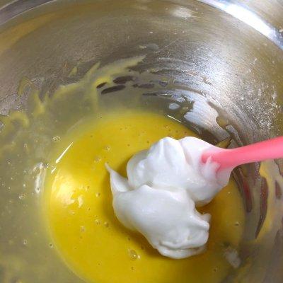 9、取三分之一蛋白霜放入蛋黄糊,翻拌