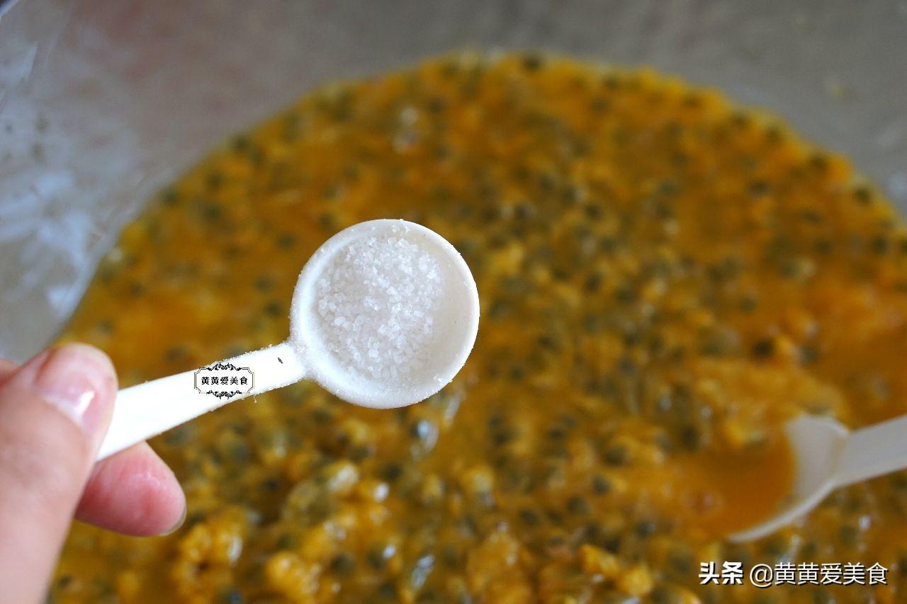 【食材】百香果600克,白糖200克,冰糖50克,盐一茶匙,蜂蜜2茶匙。