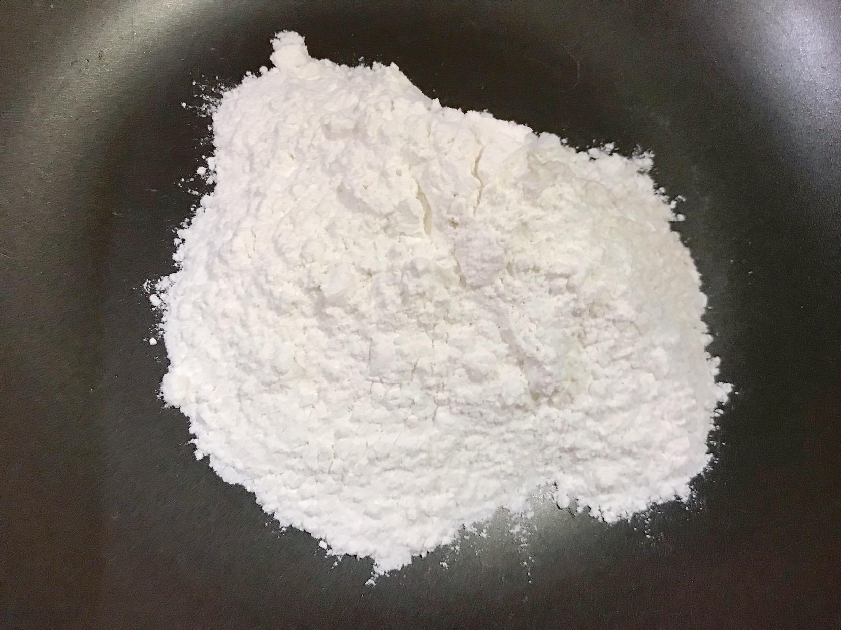 1、将120克的糯米粉放进干净的锅里炒熟,炒制微微发黄就是炒好了。这里需要注意的一点,锅内不加油,直接干炒即可。