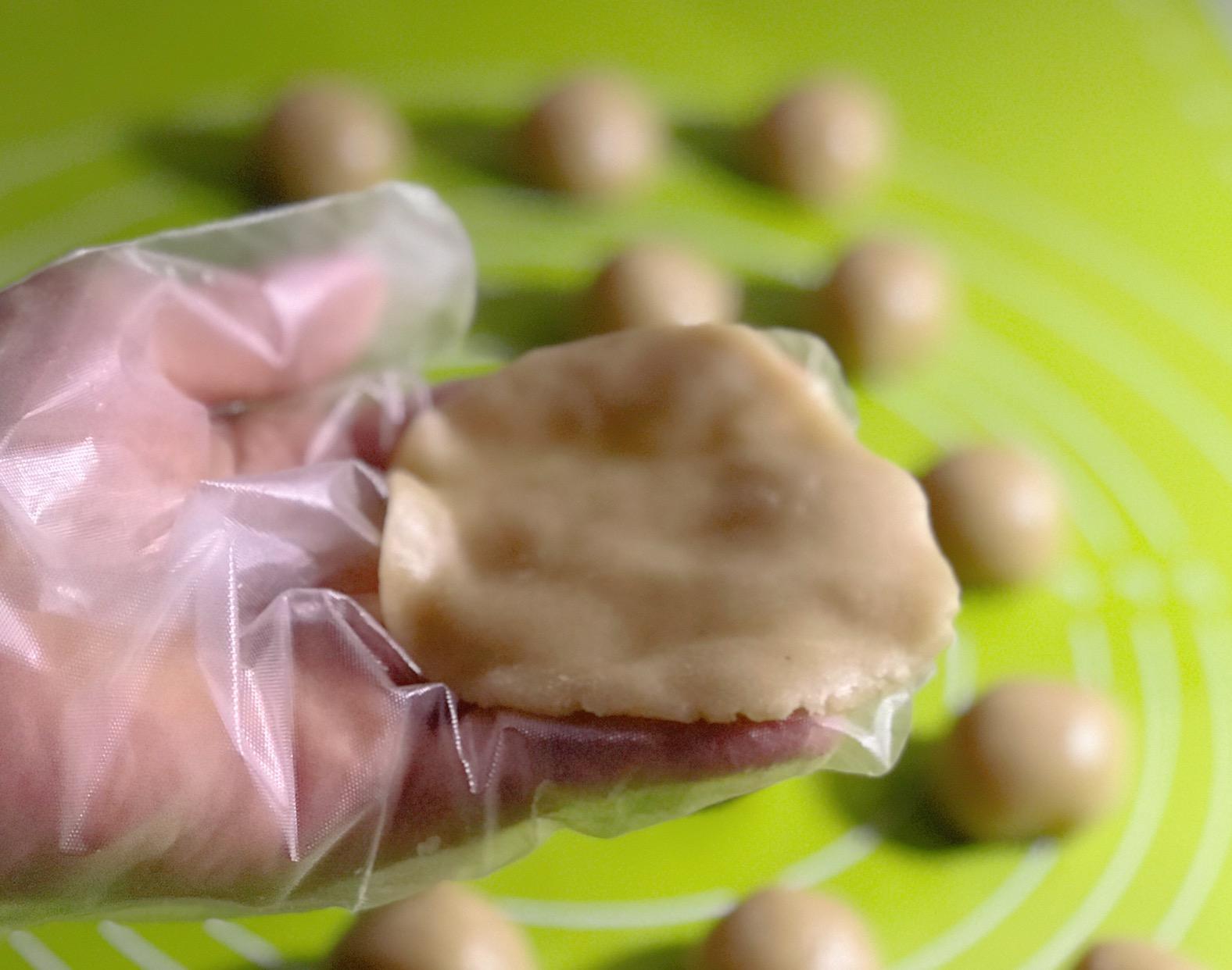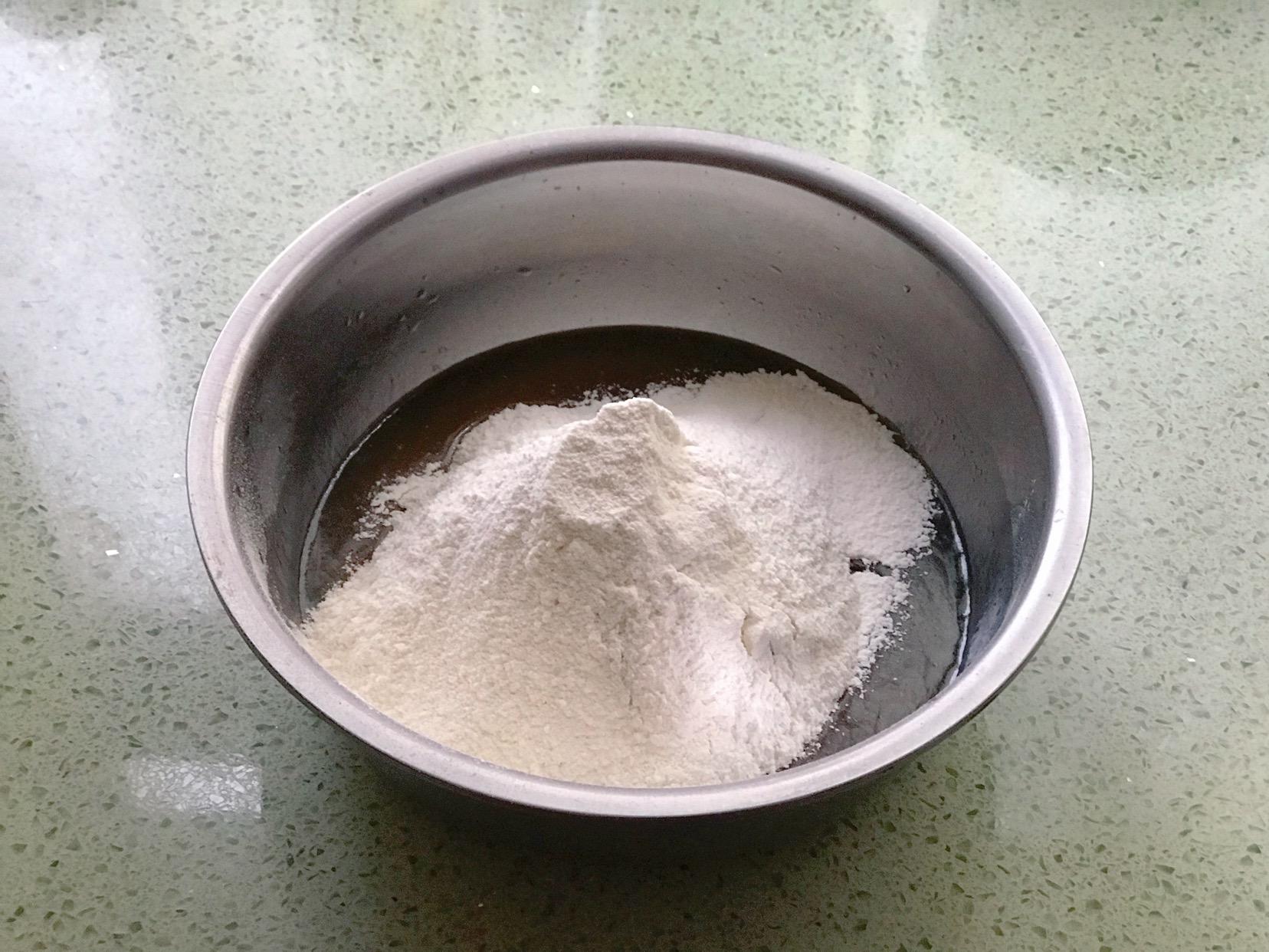 面皮:面粉300克、转化糖浆210克、花生油70克、枧水7克