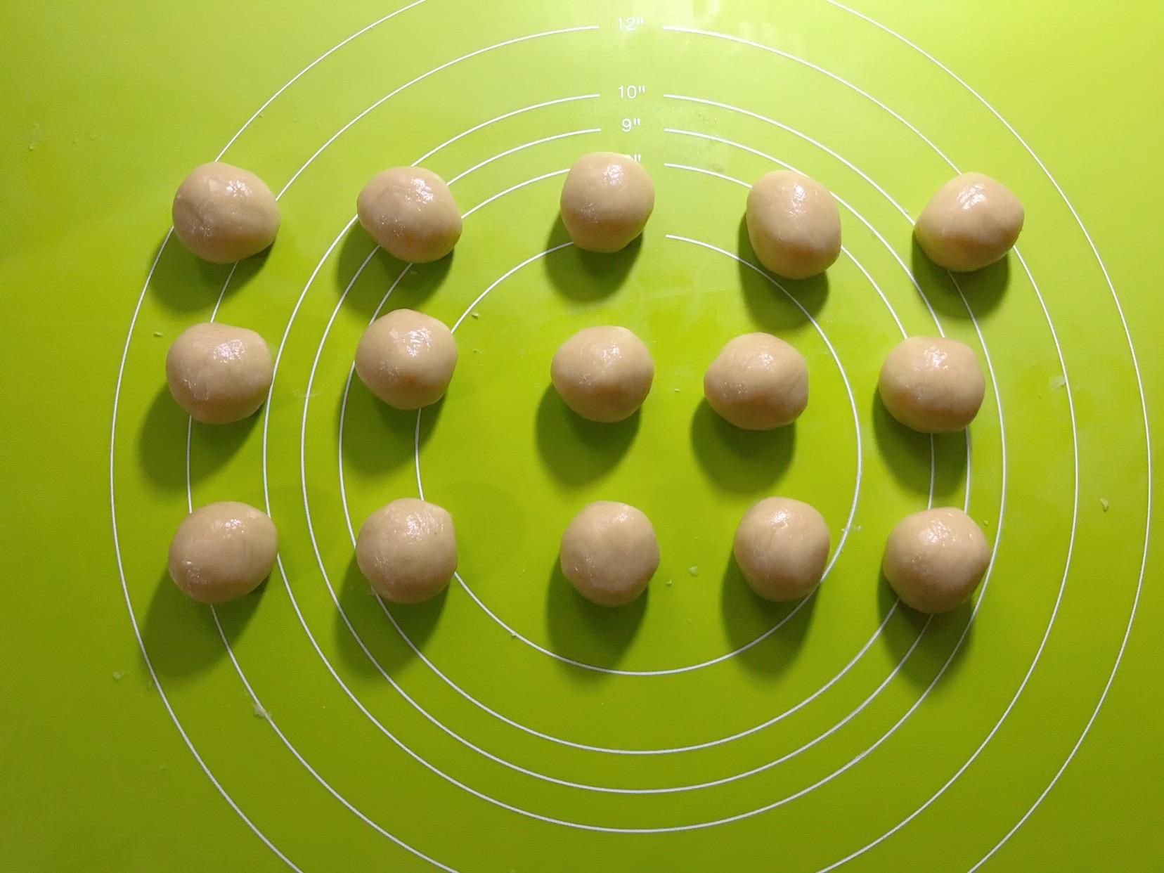 5、将制作好的黑芝麻面团,分成大小相等的份量,我使用了3:7的比例,所以馅料分为44克每个。