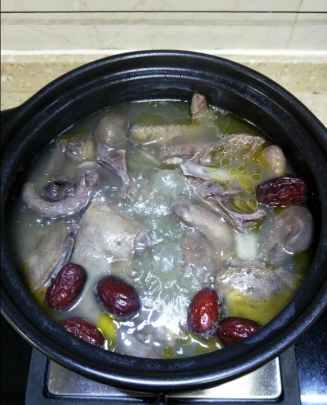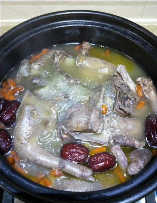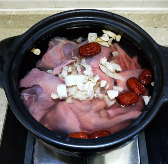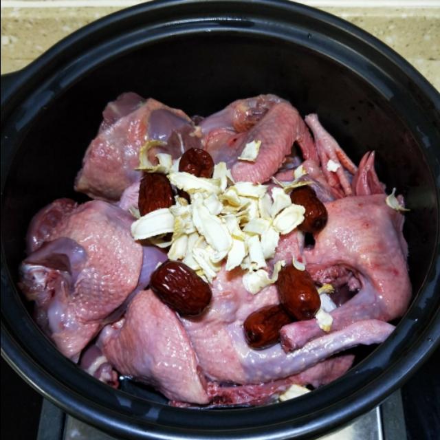 步骤4;鸽子,西洋参,红枣放入砂碗中