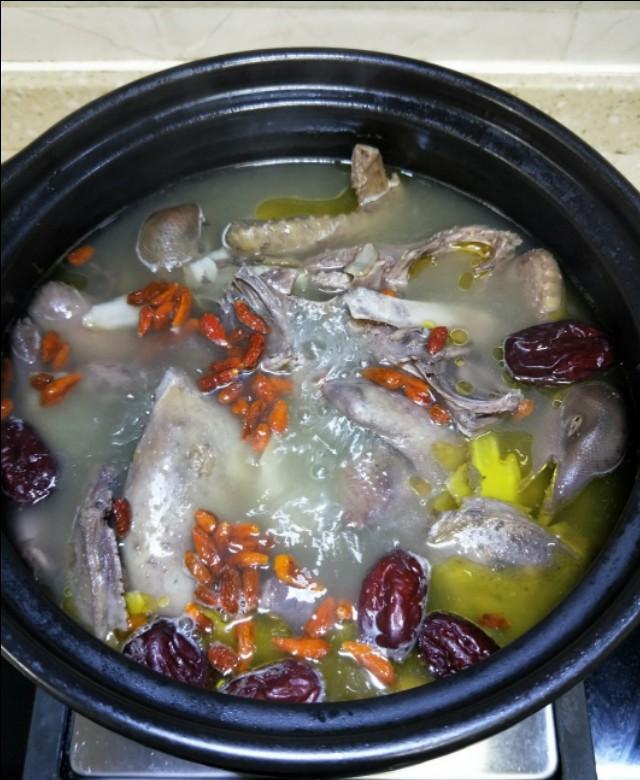 步骤8;时间到开盖放入枸杞子,盐,盖上盖子继续小火炖10分钟