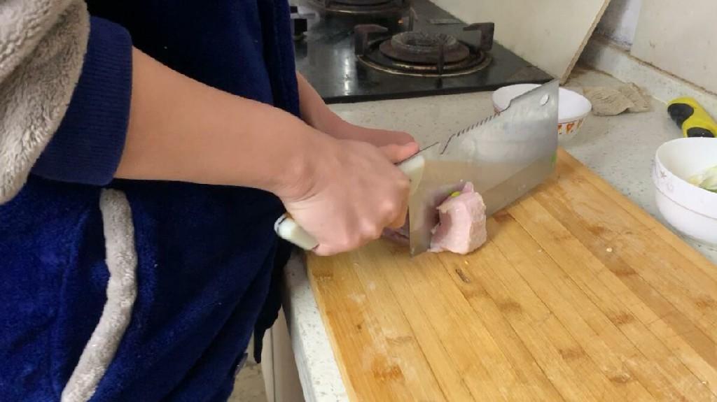 1、首先我们处理一下五花肉,将五花肉切成片,盛入碗中,放入适量的生抽,料酒,腌制一下