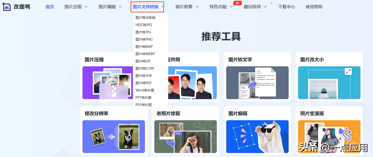 不想下载软件的推荐用它的同名网站,浏览器搜索即可打开,无需繁杂的注册登录,支持多种图片格式相互转换,点击即可自动跳转到相应页面。